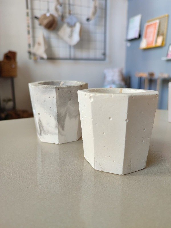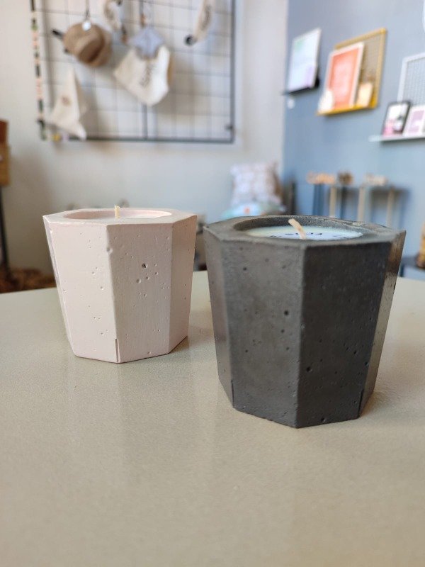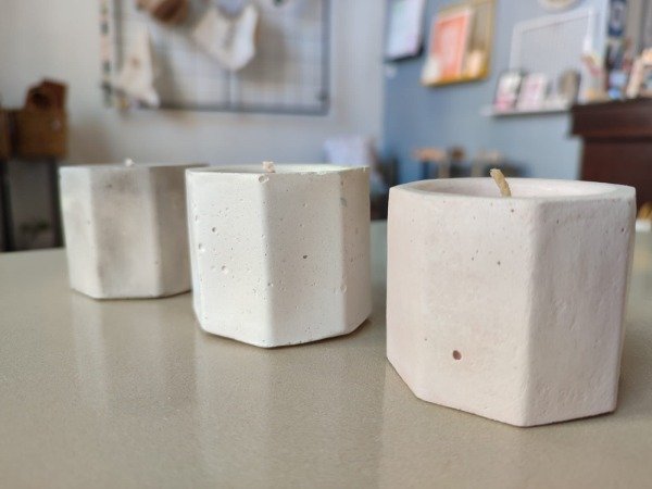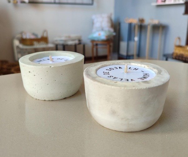 Velas de soja en envase de cemento tamaño pequeño
